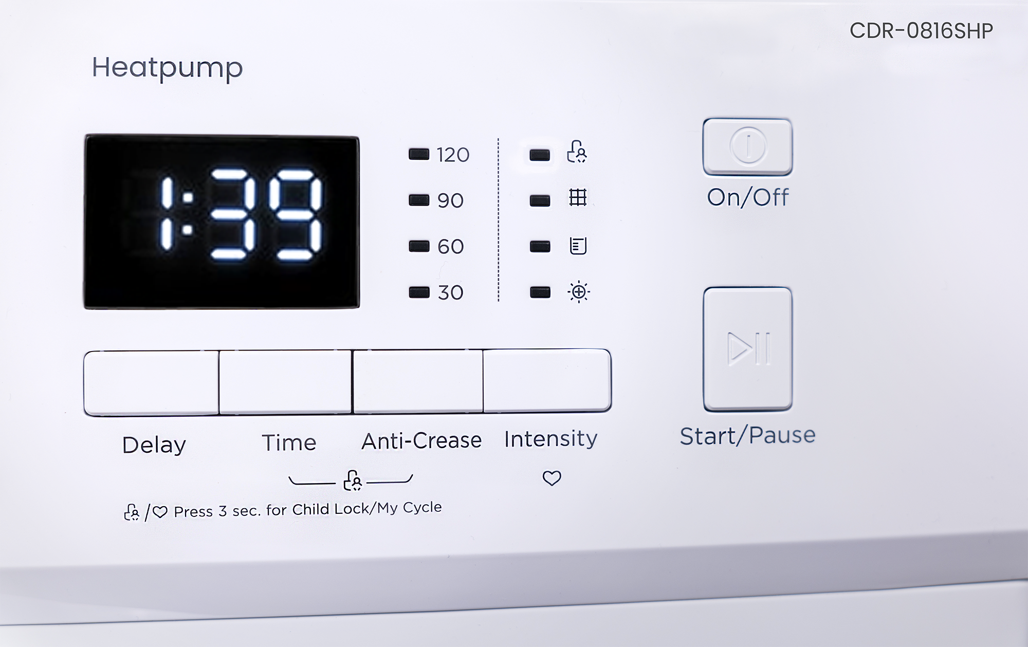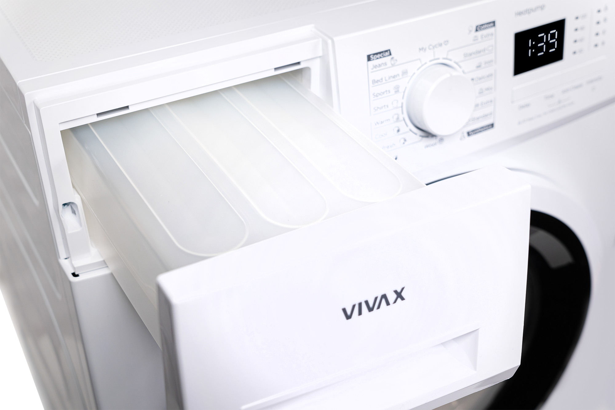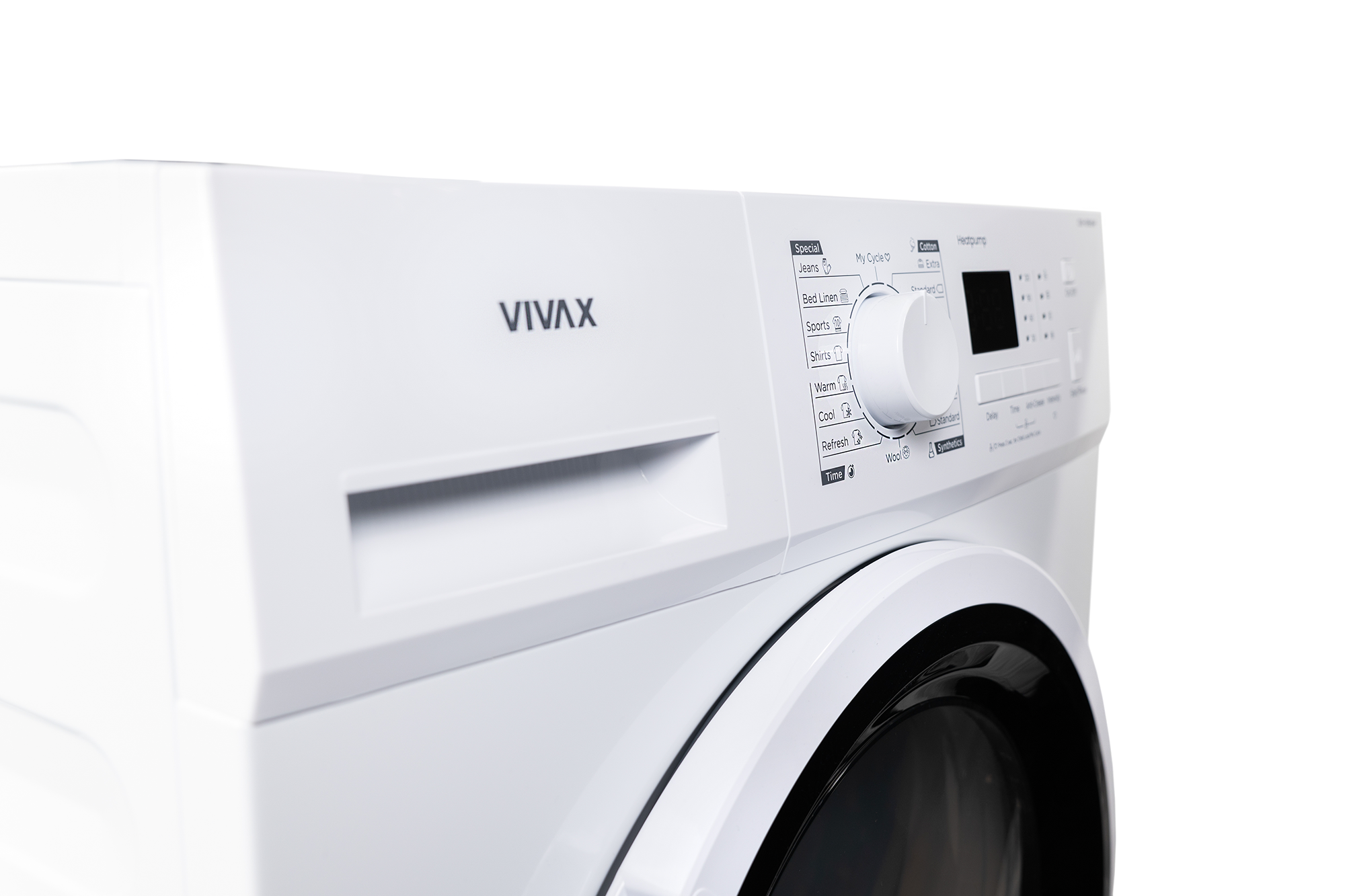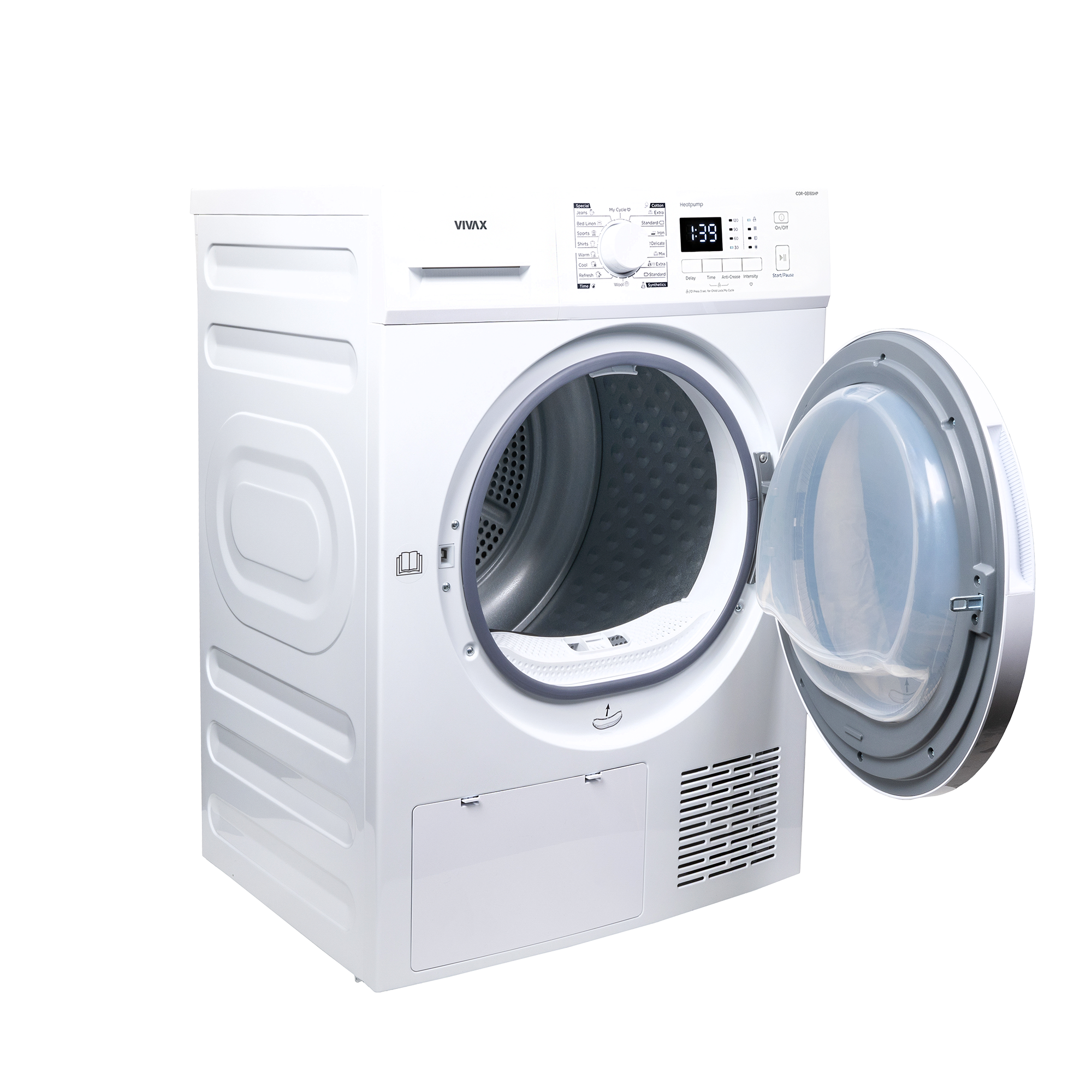 Das Bedienfeld des VIVAX Wäschetrockners CDR-0816SHP verfügt über einen zentral angeordneten Drehknopf zur Programmauswahl sowie einen Bildschirm und LED-Anzeigen mit allen notwendigen Signalen und Hinweisen, die für den Trocknungsvorgang wichtig sind – sie starten den Trocknungsvorgang mit nur wenigen Handgriffen . Das Gas in der Wärmepumpe ist R290, das eine hohe Trocknungseffizienz bei geringem Energieverbrauch ermöglicht und die Ozonschicht nicht schädigt.