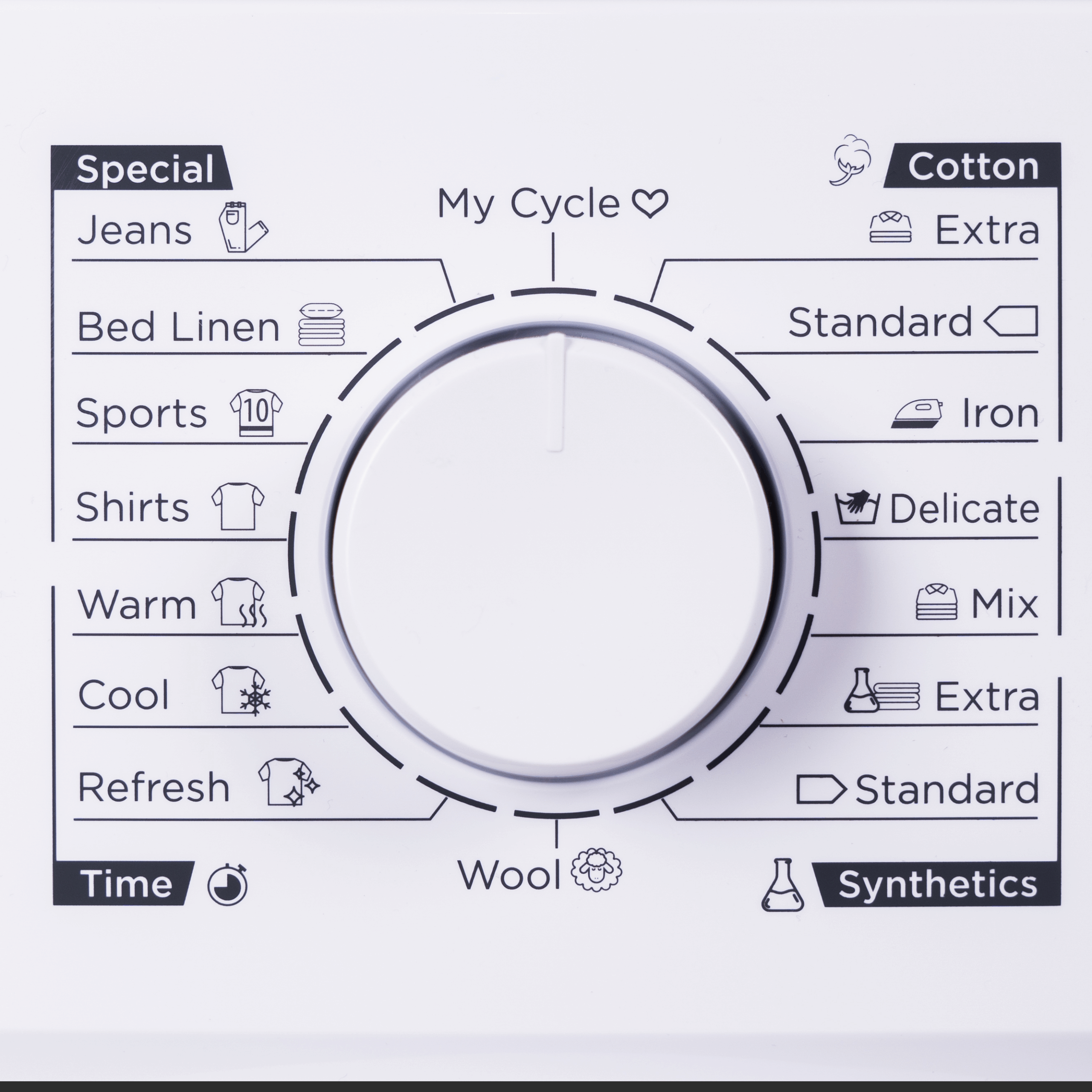 Der Trockner verfügt über Programme zum Trocknen von Baumwoll-, Woll-, Synthetik- oder Denim-Kleidung. Darüber hinaus gibt es zusätzliche Programme wie Trocknen auf die erforderliche Stufe zum leichteren Bügeln, Auffrischen der Kleidung oder Wählen der Länge der Trocknungszeit. Es besteht die Möglichkeit, die Trocknungsintensität zu wählen (Bügelbereit, Auffrischen der Kleidung oder Trocknen zur direkten Aufbewahrung der Wäsche im Schrank (Cool)). Die Trocknung kann mit einer Zeit Verschiebung von bis zu 24 Stunden verzögert werden.
