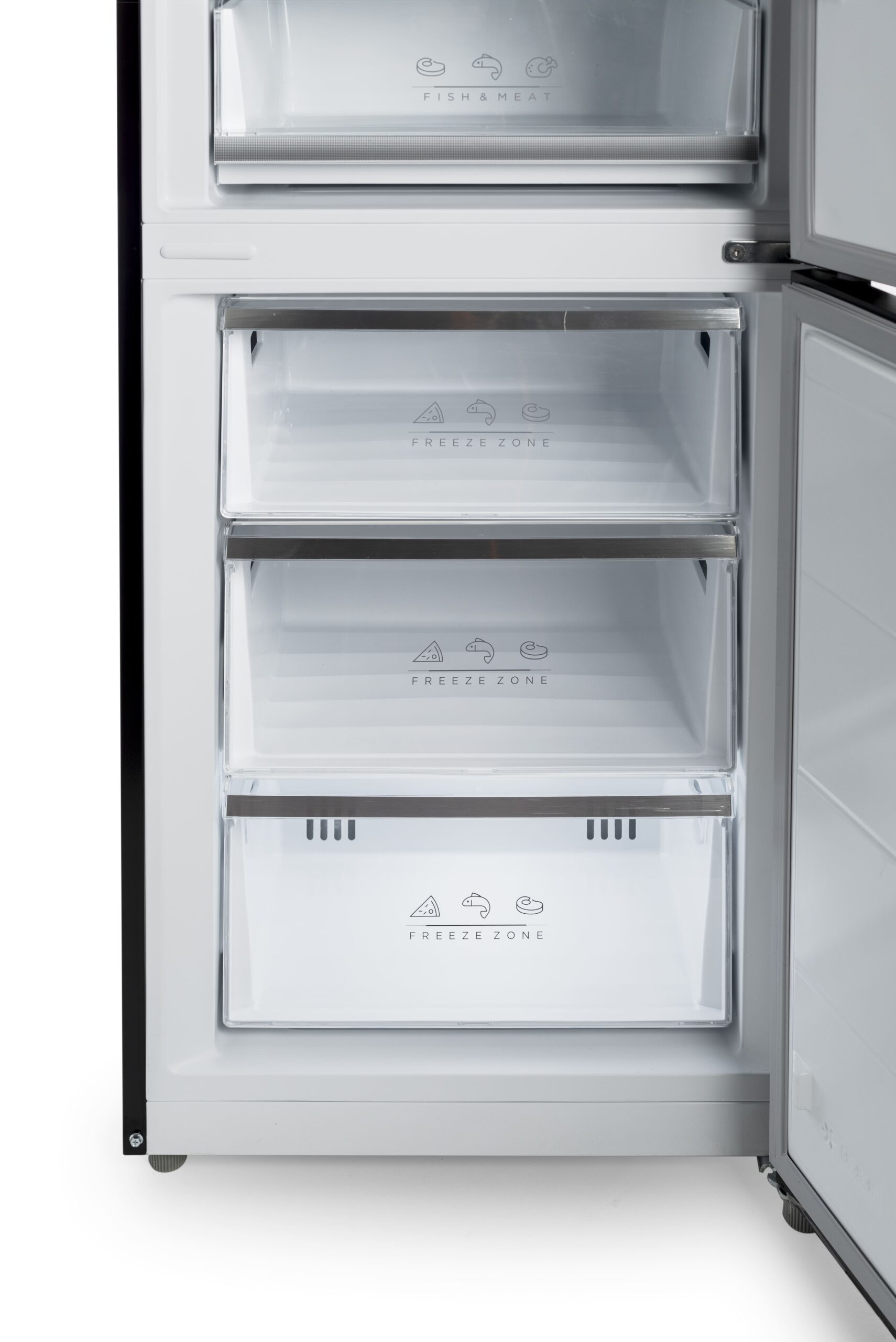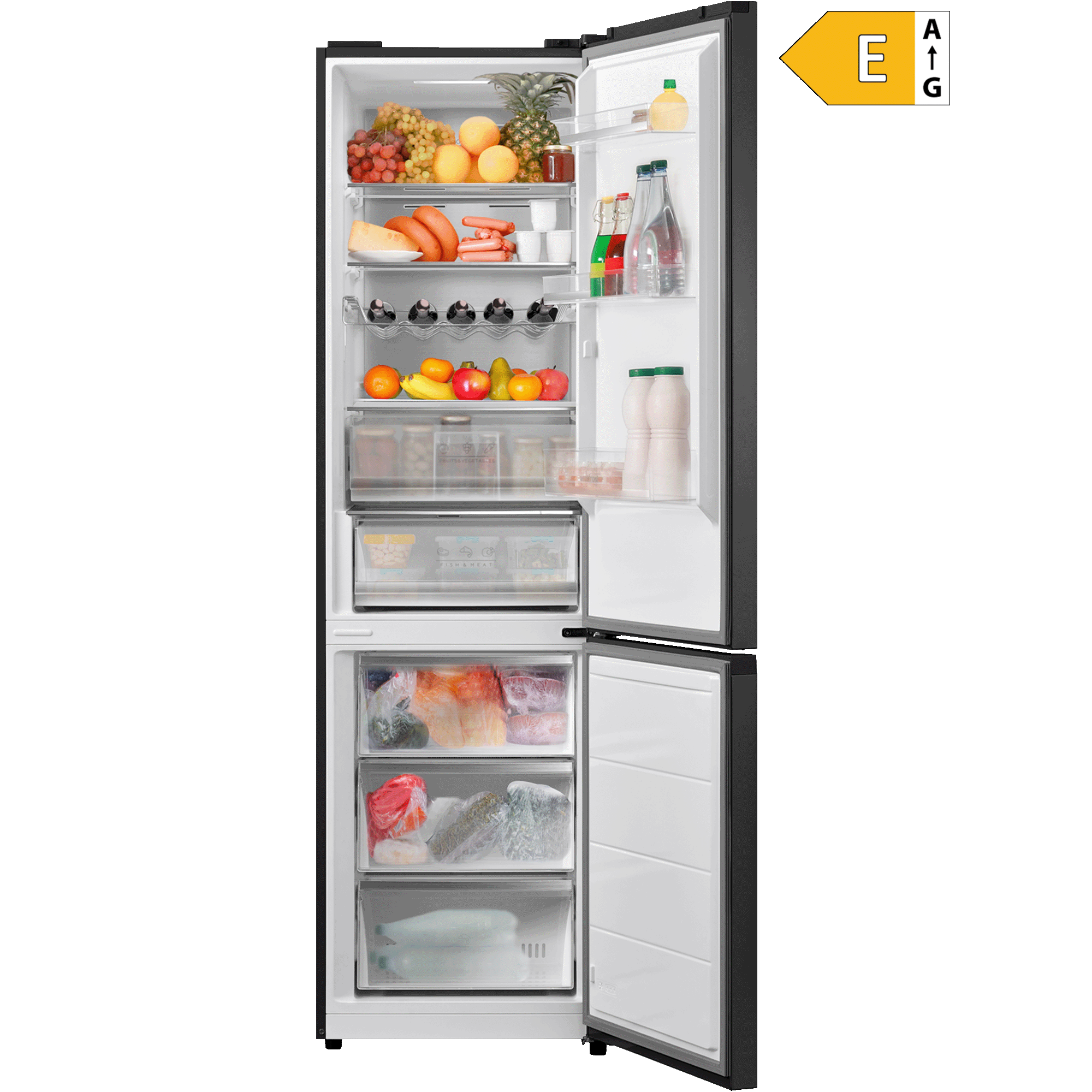 Die NO FROST-Technologie bietet eine einfache Wartung, ohne dass der Kühl- und Gefrierschrank abgetaut werden muss, und die trockene Luft im Kühlschrank verlängert die Lebensdauer der Lebensmittel erheblich. Die Regale des Kühlschranks bestehen aus massivem Hartglas und der Kühlschrank verfügt über zwei geräumige transparente Schubladen, eine zur Aufbewahrung von Obst und Gemüse und die andere zur Aufbewahrung von Fleisch und Fisch, wo die Lebensmittel völlig sicher vor äußeren Einflüssen und der Übertragung von Gerüchen sind . Transparente Gefrierschubladen erleichtern das Navigieren in Tiefkühlkost.