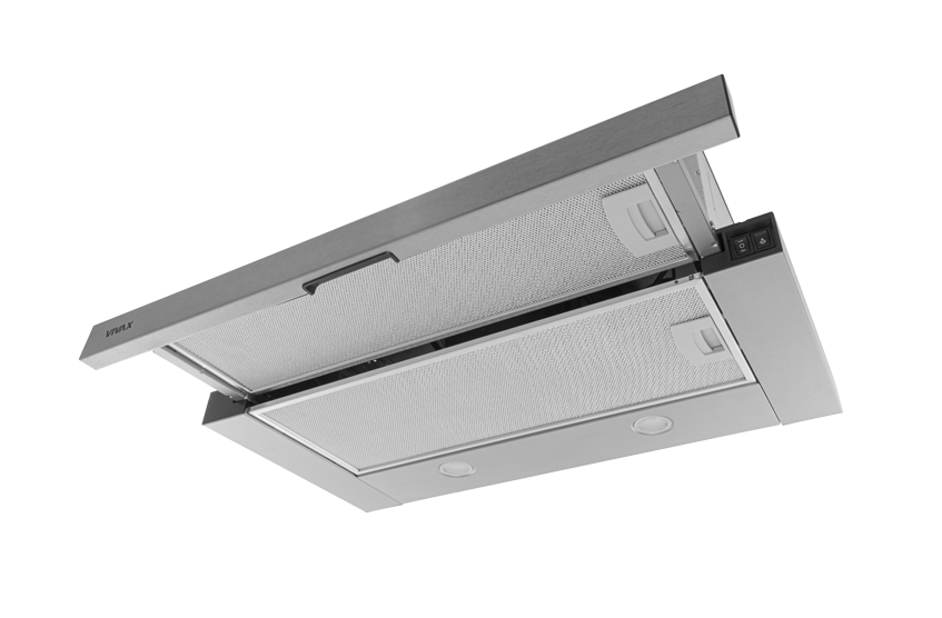 Dank zweier Betriebsstufen lässt sich die Leistung des Geräts leicht an die Bedingungen beim Kochen anpassen. Die VIVAX Dunstabzugshaube CHO-60PT100T X ist nur bei Bedarf sichtbar – sie ist vollständig in die Küchenzeile integriert. Sie ist mit waschbaren dreischichtigen Aluminium-Fettfiltern ausgestattet, die eine effektive Entfernung von Dampf, Fett und unangenehmen Gerüchen aus dem Küchenraum ermöglichen. Auf höchster Luftstromstufe entfernt die Haube bis zu 281 m3/h Luft aus dem Raum.
