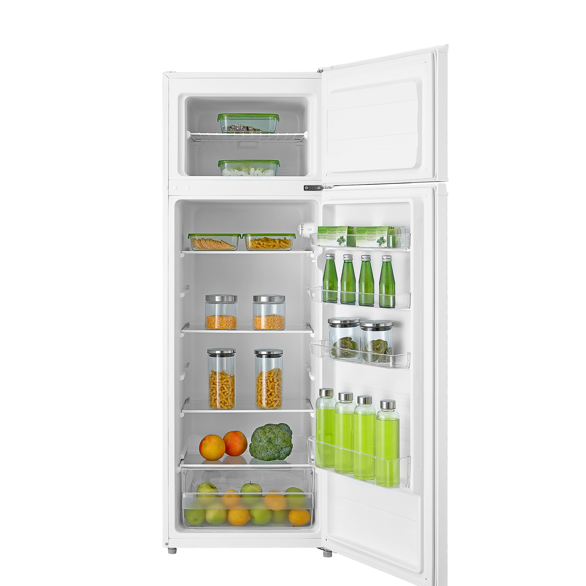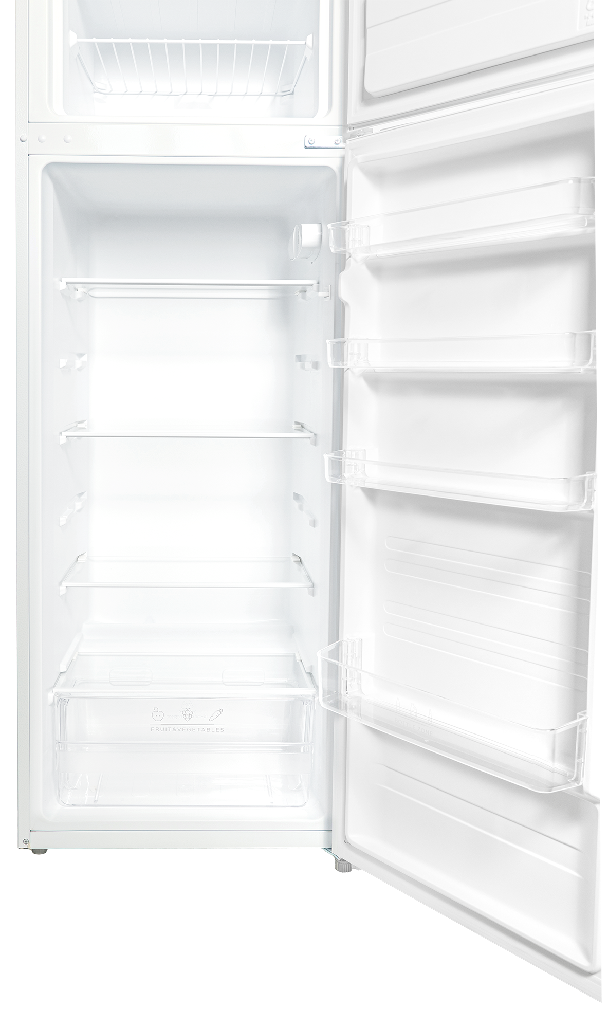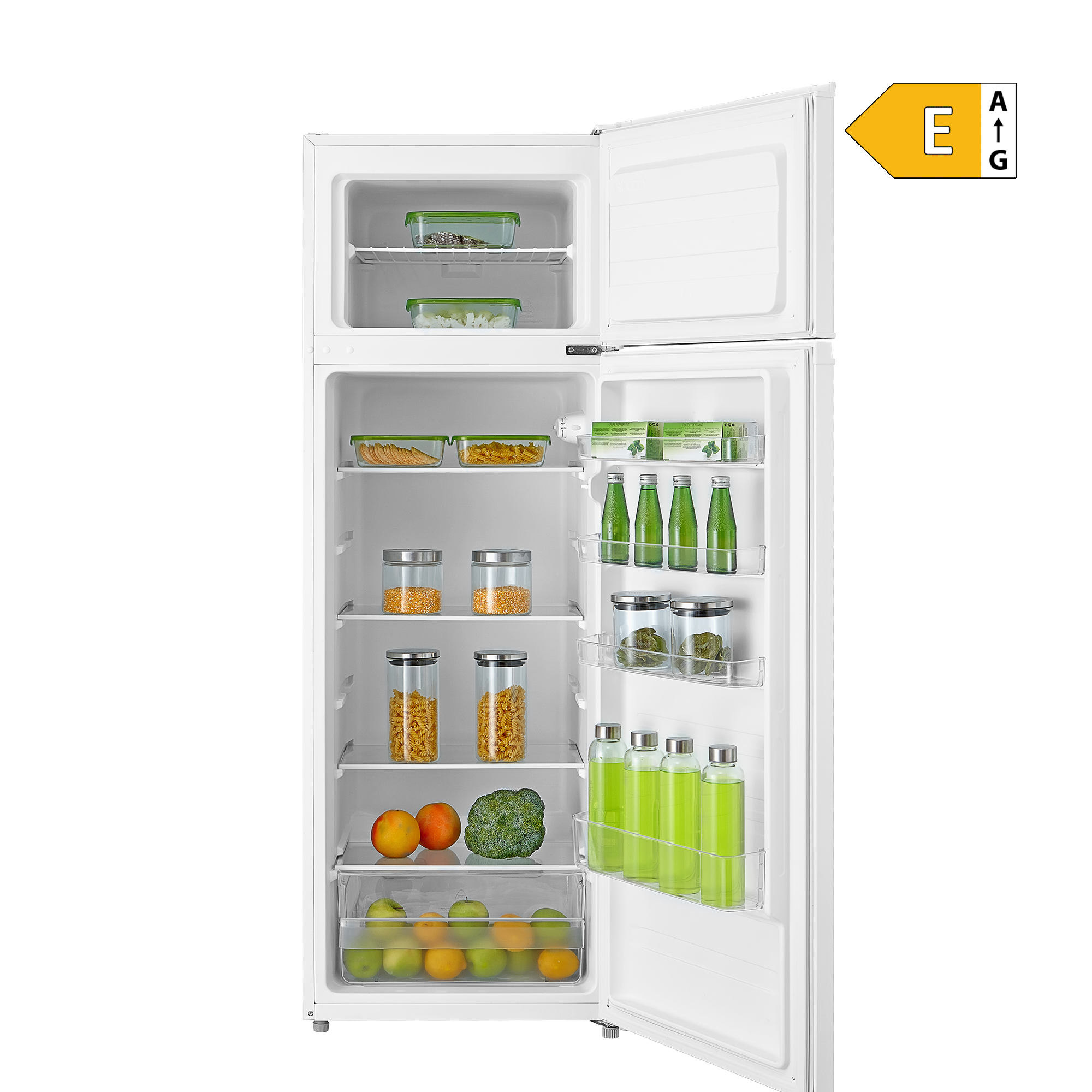 Der VIVAX Kühlschrank mit Gefrierfach DD-235E W ist der große Bruder des beliebtesten Modells DD-207E! Wenn Sie einen Kühlschrank mit Gefrierfach mit zwei Türen und gleichzeitig mehr Platz benötigen, ist der DD-235E W die ideale Wahl. Ein großer Kühlschrank mit separatem Gefrierfach und einem Gesamtfassungsvermögen von 235 L ist ausreichend für eine größere Familie. Er ist nicht nur energieeffizient, sondern nimmt auch sehr wenig Platz ein. Das Fassungsvermögen des Kühlschranks von 194 L mit insgesamt vier Glasablagen sorgt für die Frische der Lebensmittel und verlängert ihre Haltbarkeit, während die Schublade unten im Kühlschrank die Möglichkeit bietet, frisches Obst und Gemüse von den übrigen Lebensmitteln zu trennen.