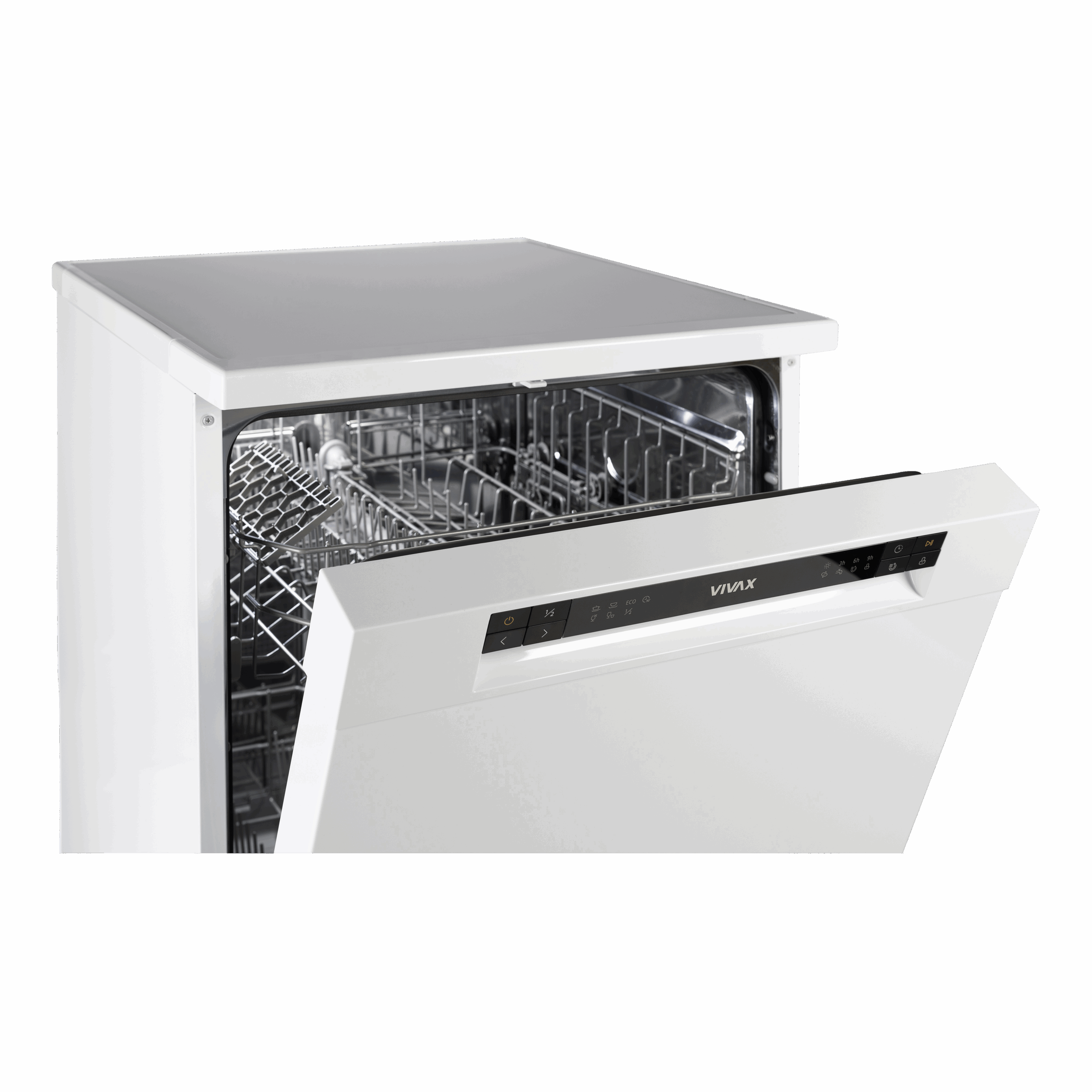 Der freistehende VIVAX-Geschirrspüler DW-601262C ermöglicht mit seinem großen Fassungsvermögen das einfache Spülen von 12 Standardgeschirrsätzen und ist ideal für große Haushalte.