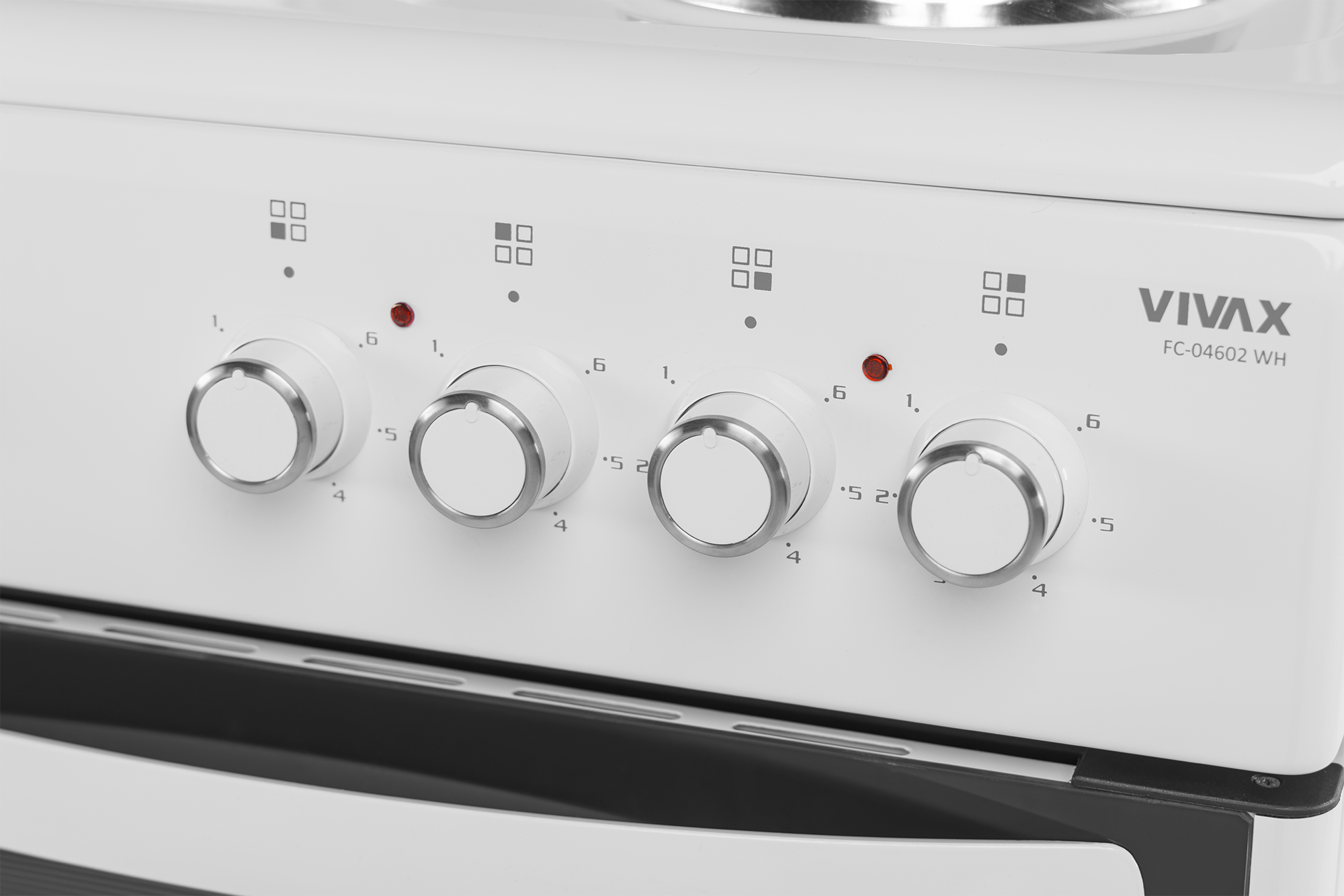 Der VIVAX Standherd FC-04602S WH ist die ideale Wahl für Ihre Küche, da er durch sein modernes Aussehen und seine einfache Bedienung beeindruckt.